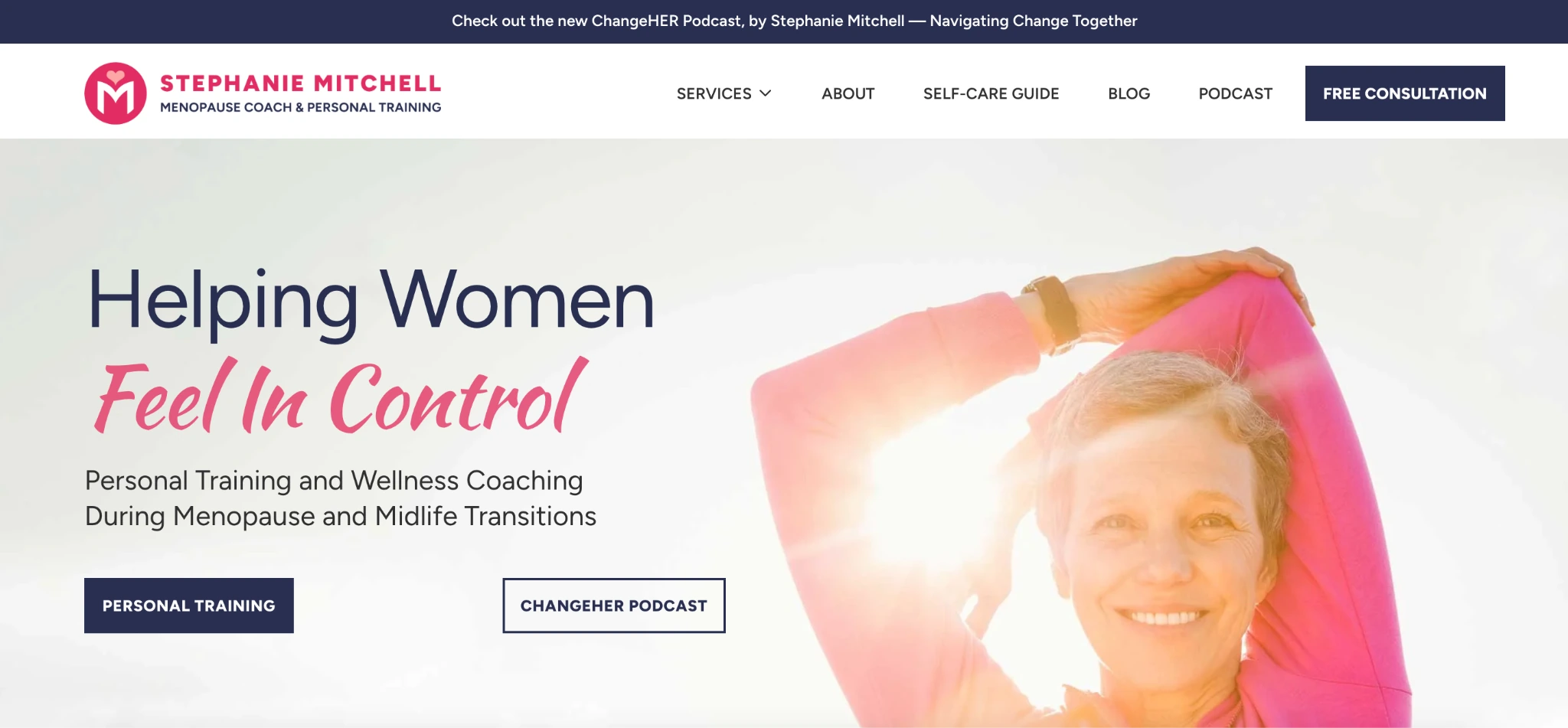 With 30 years in fitness, Stephanie Mitchell brings decades of hands-on experience working with midlife women. She holds menopause coaching certifications and hosts the ChangeHER podcast, where she interviews experts on hormonal health. Her coaching style emphasizes the personal trainer-client relationship above all else.